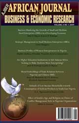 The articles in this issue address business practices in 47 sub-Saharan African countries, female immigrant entrepreneurship in South Africa Post 1994, entrepreneurial export orientation, strategy, and performance of SMEs in Nigeria, causality between current account and budget deficits in Kenya, adoption of information and communication technology in Nigeria, business profiles of female immigrant entrepreneurs in Nigeria, and barriers to SMEs development in the manufacturing sector Tanzania. In the first article, Kabongo and Okpara examine the impact of legal origins on the regulations of start-up businesses in 47 sub-Saharan African (SSA) countries. Following the classification of SSA nations in English and French legal origin countries, the authors examine the extent to which the historical origins of countries play a determinant role in the ease of starting a new business enterprise, in terms of the number of procedures with which an entrepreneur must comply in order to sta...